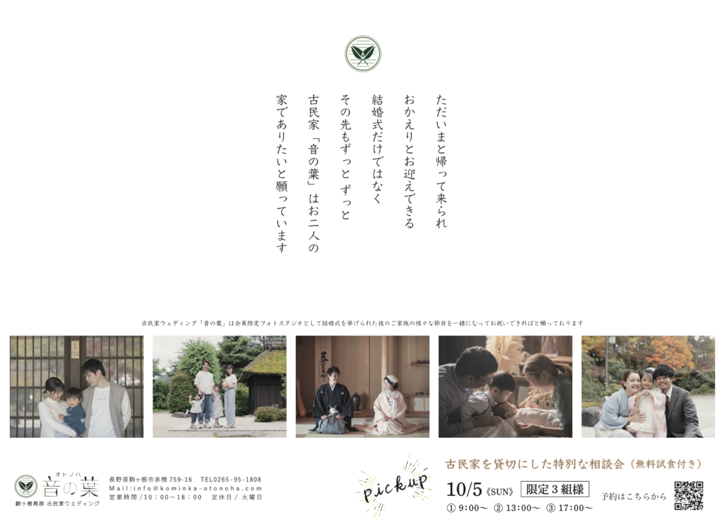 結婚式のその先もずっと、古民家音の葉はお2人の「家」でありたい。私たち古民家ウェディング「音の葉」が最も大切にしている事です。