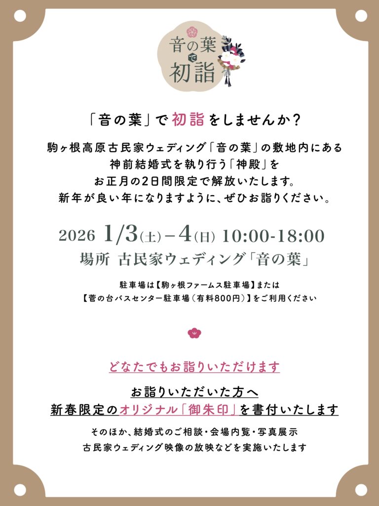 ぜひ、音の葉 初詣にお気軽にお越しくださいませ。