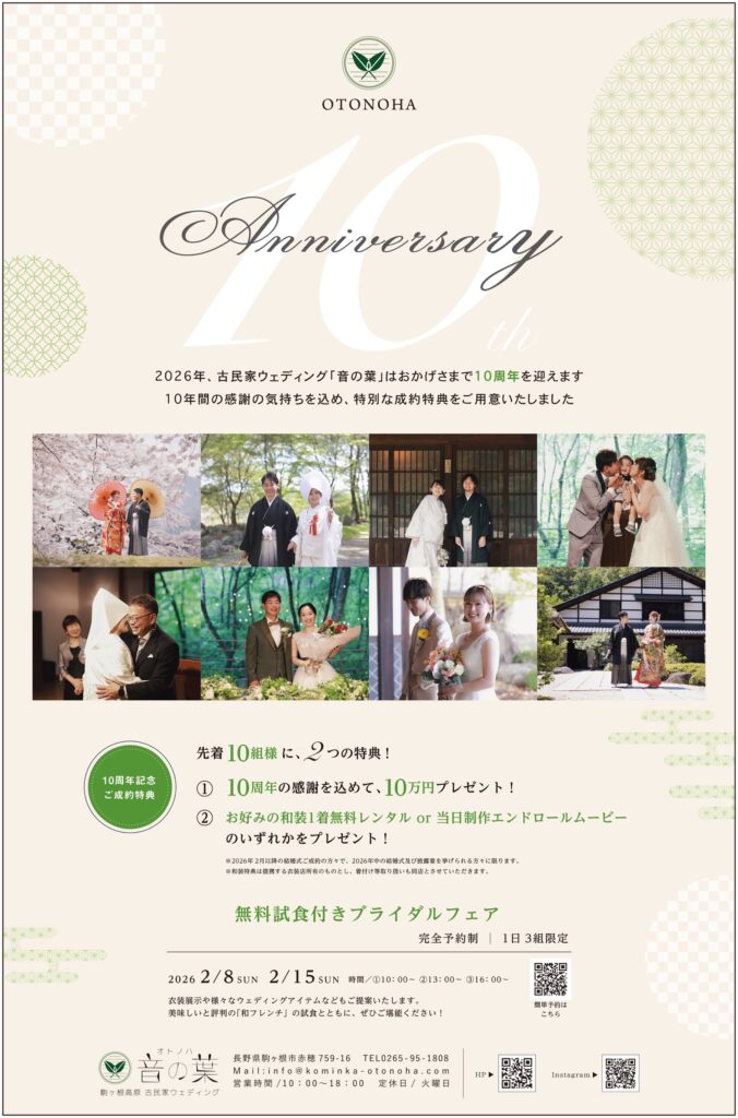 10年間の感謝を込めて、来年ご結婚式を挙げられる方々に多くの特典をご用意させていただいております。